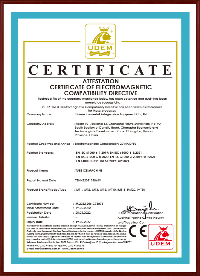 歐盟認(rèn)證管冰機(jī)CE證書