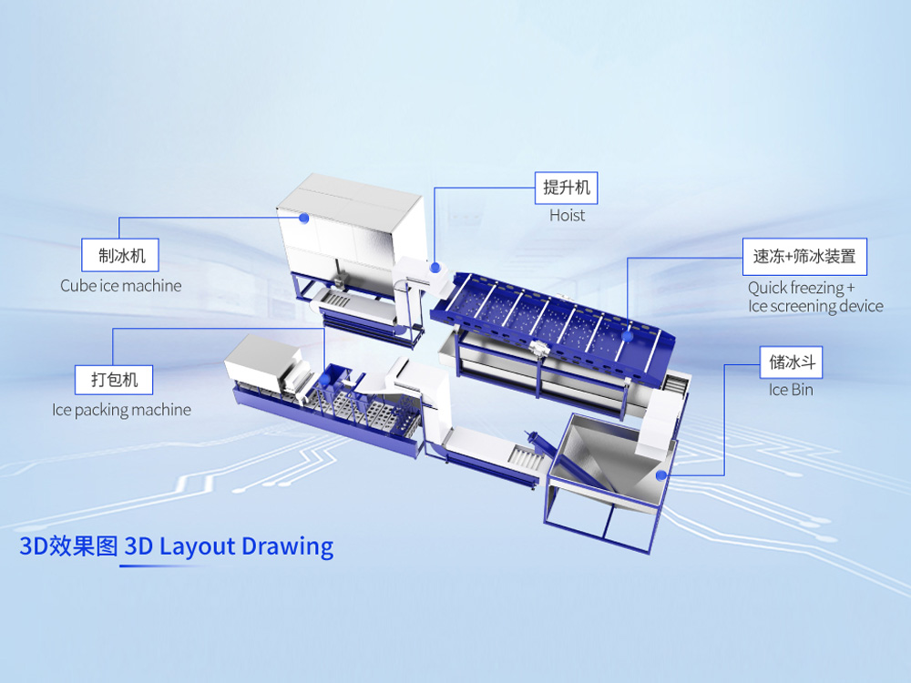 全自動化食用冰生產(chǎn)線是一套高度集成的無人化、自動化創(chuàng)新設(shè)備,專為大規(guī)模生產(chǎn)、衛(wèi)生健康、高質(zhì)量的食用方冰廠而設(shè)計。該系統(tǒng)不僅包括了制冰機(jī),更集成有凈水器,儲冰斗、速凍振動篩、傳輸系統(tǒng)、提升機(jī)以及自動稱重、打包機(jī),形成了一條從制冰到包裝的全自動化生產(chǎn)線。