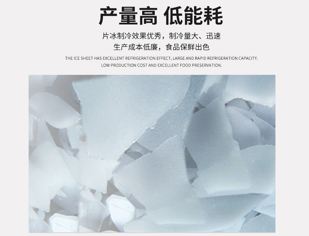 片冰機(jī),制冰機(jī)的一種,片薄、干爽疏松狀的白色冰。平面形狀不規(guī)則,厚度15毫米 —22毫米,直徑約為12 - 45毫米。 片冰質(zhì)地干燥、柔軟無尖銳棱角,不會(huì)刺傷冷凍物體。冷藏包裝過程中其扁平的外型將盡可能避免傷害到被冷藏物,對(duì)被包裝食品起到保護(hù)作用。 片冰具有大接觸面積、快速制冷、儲(chǔ)藏運(yùn)輸便捷、減少熱交換,保持冰的溫度。自動(dòng)片冰機(jī)采用先進(jìn)的立式螺旋刀切冰式蒸發(fā)器,制冰時(shí)由冰桶內(nèi)部的分水裝置將水均勻的分灑至 冰桶內(nèi)壁快速結(jié)冰,冰成型后由螺旋冰刀切冰落下。