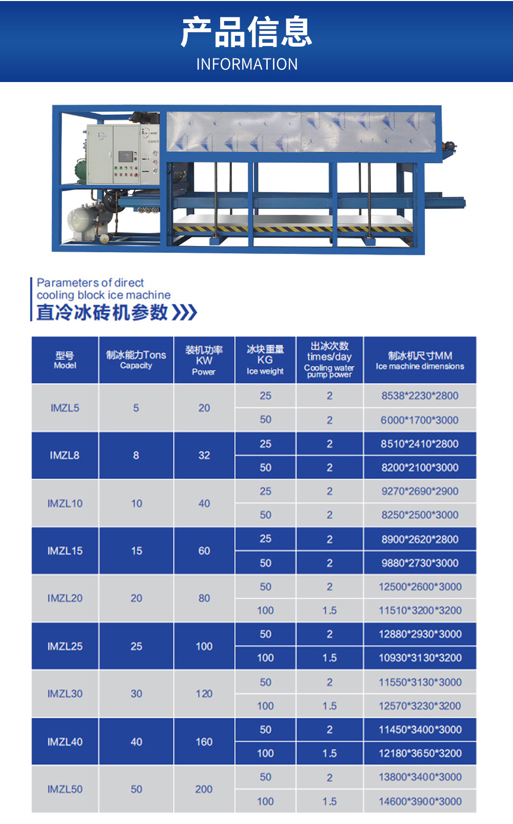 直冷冰磚機是一款冰磚(冰塊)生產(chǎn)設備,直冷冰磚機蒸發(fā)器采用導熱的鋁合金材質(zhì),與制冷劑直接換熱,凍結(jié)溫度低, 制冰速度快,且冰塊融化速度慢。直冷冰磚機自動化程度高,自動制冰、自動補水、自動脫冰,全自動化,無需人工操作。直冷冰磚機冰塊干凈衛(wèi)生,可達到食用標準。直冷冰磚機冰模長期使用無需更換,產(chǎn)品模塊化設計,操作簡單,占地面積小,安裝方便,現(xiàn)場接水接電即可制冰。