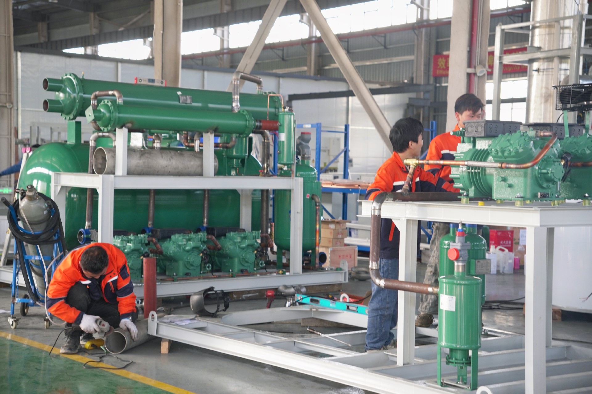 目前,公司生產(chǎn)的多臺設(shè)備已進入組裝調(diào)試階段,近30位員工正駐守在車間一線,為產(chǎn)品的順利驗收保駕護航。無論是生產(chǎn)車間還是辦公室,湖南冰勛制冷的員工們團結(jié)協(xié)作,互幫互助。充分詮釋了”齊心協(xié)力、攻堅克難”的精神,用自己的實際行動助推公司發(fā)展。
